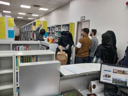 به منظور آشنایی دانشجویان با منابع و فضای کتابخانه تور آشنایی با کتابخانه برای دانشجویان جدید الورود در تاریخ 25 آذرماه 1404 برگزار شد. در ابتدای بازدید مسئول کتابخانه خانم طرفی پور نکات مهم و مورد نیاز شامل: آشنایی با بخش های مختلف کتابخانه، نحوه سرچ جستجوی منابع, رعایت قوانین و مقررات، آشنایی با سامانه بهسان جهت شرکت در گارگاه ها، نحوه استفاده از WiFi و گرفتن پس ورد از سایت برای استفاده از اینترنت، اهمیت منابع دیجیتال و الکترونیکی، آشنایی با پورتال کتابخانه را مطرح کردند. در پایان این بازدید دانشجویان به صورت عملی نحوه سرچ در برنامه کتابخانه و پیدا کردن منابع مورد نیاز خود در مخزن کتابخانه را فرا گرفتند و و دانشجویان ضمن طرح پرسش های خود با خدمات کتابخانه بیشتر آشنا شدند.